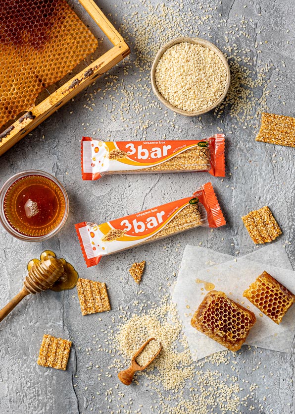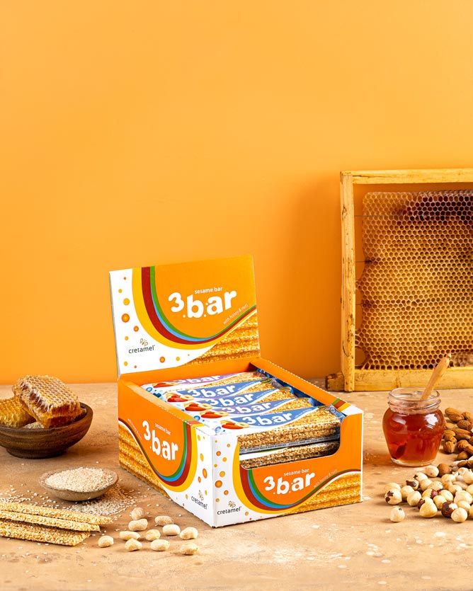 Crunchy thins made of sesame with crocan nuts and Cretan honey